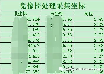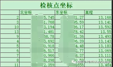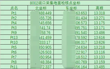 检核点坐标(测绘数据保密,个位数以前均做马赛克处理,下同)