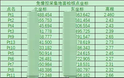 免像控处理后采集的地面检核点坐标