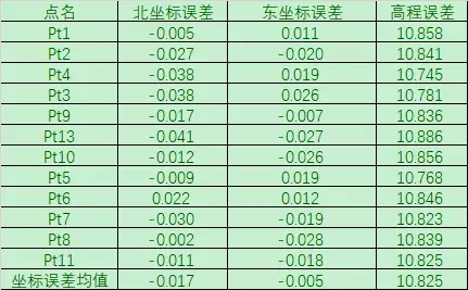 通过本表格可以看出,添加控制点后,东坐标误差整体变小,与检核点坐标基本一致。并且通过控制点坐标误差可以看出,采集坐标的误差本身在1.5cm左右。