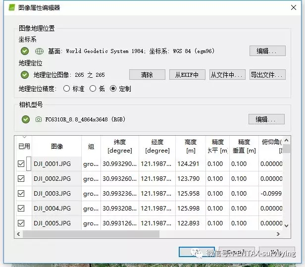 本次任务使用Pix4D处理,图像坐标系为WGS 84,图像地理定位精度手动更改为0.1m。