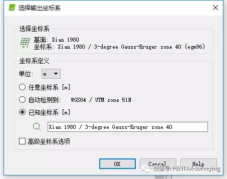 输出坐标系为Xian 1980 高斯投影40号带