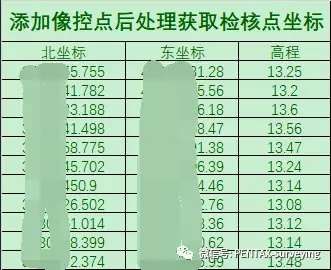 添加像控点后获取的检核点坐标