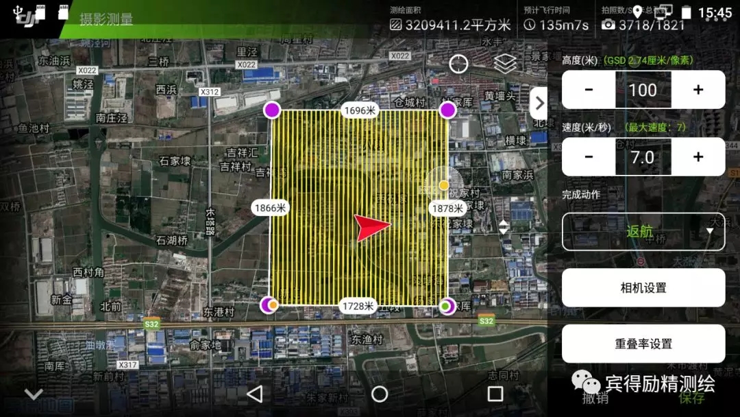 P4R的任务规划突破了两公里的限制,可以规划大面积任务。执行航线任务时,只要选好起飞点,就不需要跟着无人机的起降点四处跑。根据我们的经验,一块遥控器电池电量可以控制4个架次的无人机飞行,在可以充电的情况下,为保证可以一直执行飞行任务,可以考虑搭配2块遥控器电池,6-8块无人机电池、2套无人机管家进行进行外业作业,此时效率较高。不能充电的情况下,请根据遥控器电池电量选配电池。我们测试120米航高,持续作业的情况下,起飞点不动,12个架次可以飞约5平方公里。