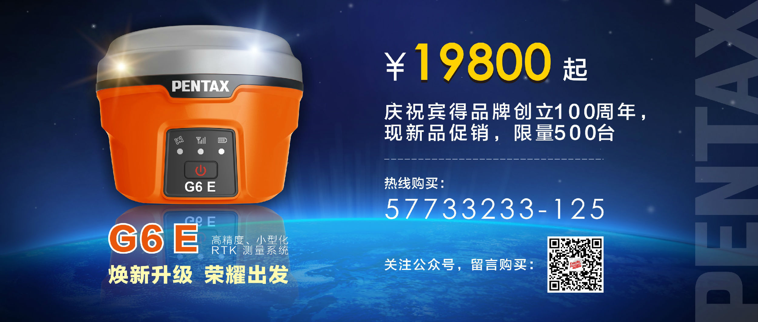 PENTAX(宾得)最新推出的G6 E系列GNSS接收机,全视场跟踪GPS/GLONASS/GALILEO/COMPASS (北斗卫星)信号,支持北斗B3、GPS L5最新信号,以获取牢固准确的卫星定位。G6 E系列接收机提供卓越的性能和强大的应用,广泛应用于线路测量、桥梁建筑、土木工程、地质勘查等多种测绘项目。