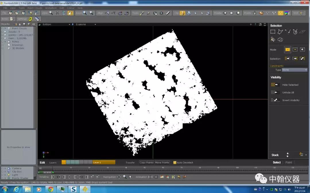 1. 先将点云转为白色,裁切树林区域以及地表部分点云,转至正射视角,并由下往上