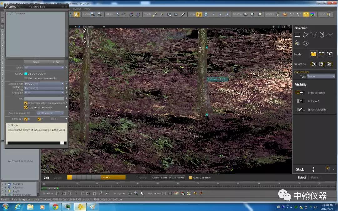 1.先量测由地表往上1.3m的高度,将其他不需要的点云遮蔽起来。