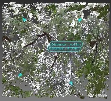 2.利用量测功能直接量测由树顶到地表的垂直距离。