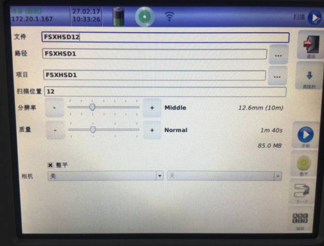 扫描时仪器上的设置(采用中等分辨率及基本数据质量,扫描时间约100 秒)