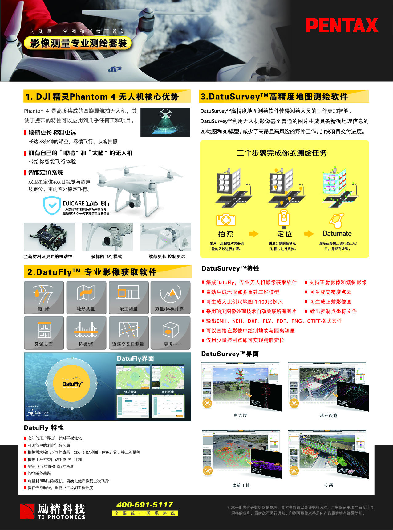 DJI精灵4 + DatuFlyTM 图像获取软件 + DatuSurveyTM 测绘软件+点云+正射影像仅需18888