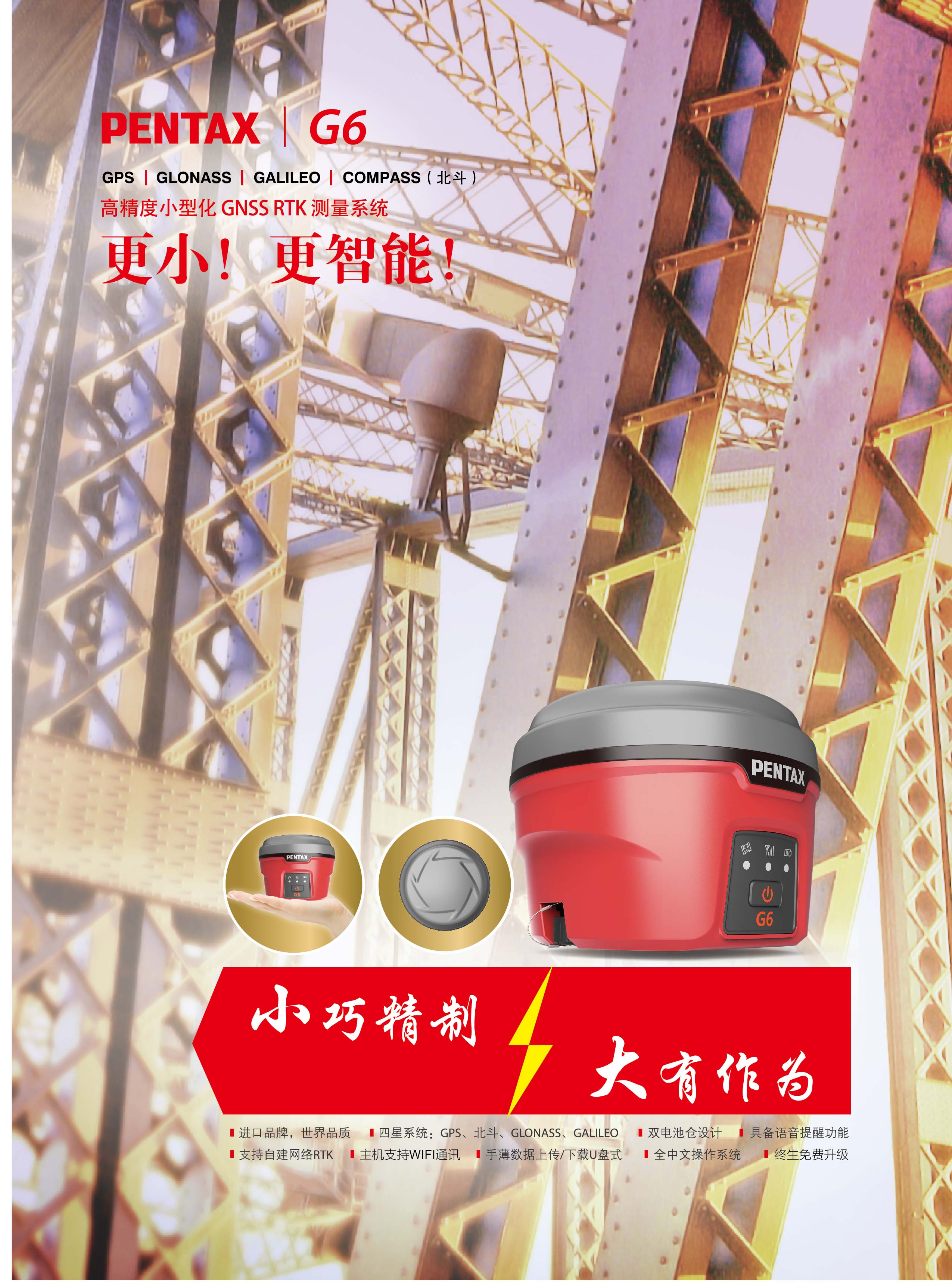 随着科技的发展以及市场需求,旧时代的产品功能已经无法满足大多数客户的需求,为了满足客户们的需求,宾得近期推出了新款GPS—G6。G6相比较之前的LGN200而言,不仅体积方面进行了大幅度的缩小,方便了客户们的携带,更是在材质方面做出了很大的优化,同时附加了倾斜功能,让客户们能够更加简单,便捷的使用。