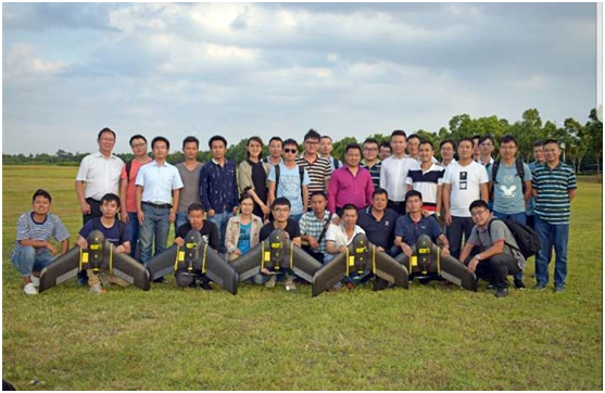 上图是全体成员在爱马仕马场实操练习eBee无人机。eBee无人机具备飞行速度快、飞行时间长、安全、稳定等许多优势。经过测试,eBee plus无人机使用一块电池的实际飞行时间大于一个小时。