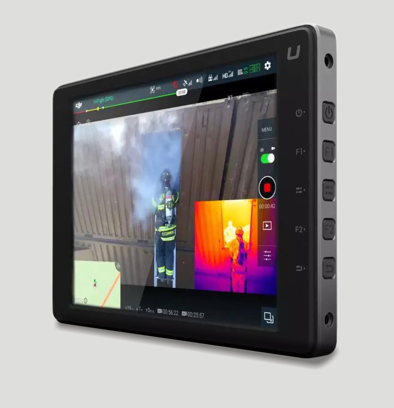 在控制平板上,可以独立显示高清影像和红外影像,也可以显示融合影像。