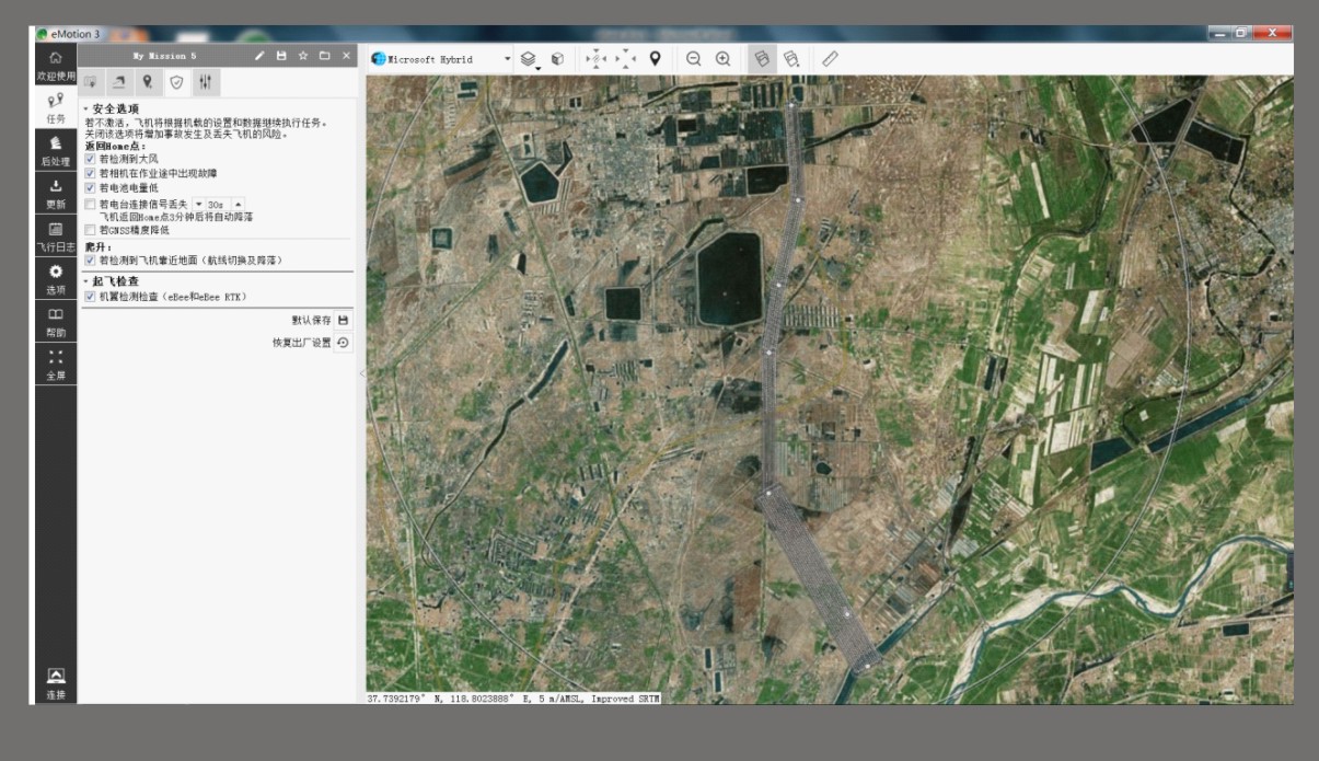 eBeePlus的RTK/PPK功能可实现厘米级精准定位,考虑到无人机可能遇到恶劣的通信环境导致部分位置定位信息不能实时解算,因而采用后处理方式的PPK功能可有效解决此种顾虑。eMotion通过自带的后处理功能可在无人机飞行任务完成以后简单几步完成精准定位并更正照片POS信息。