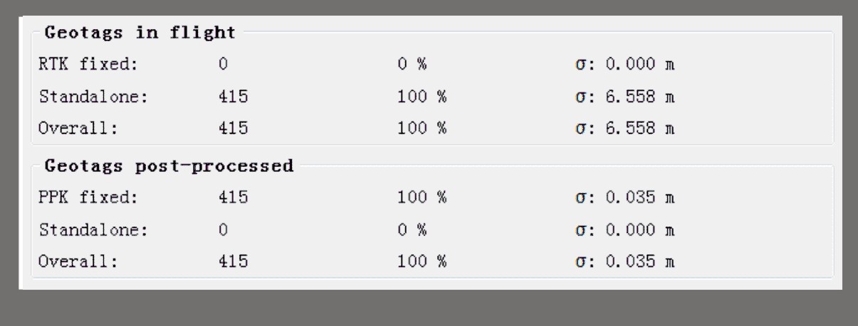 相比于单点定位飞行的6.558米定位精度,后处理极大的提升精度至0.035米,并且处理率100%,由此带来的直接收益就是无需大量像控点,有效降低了外业工作量,工作效率得以显著提升。