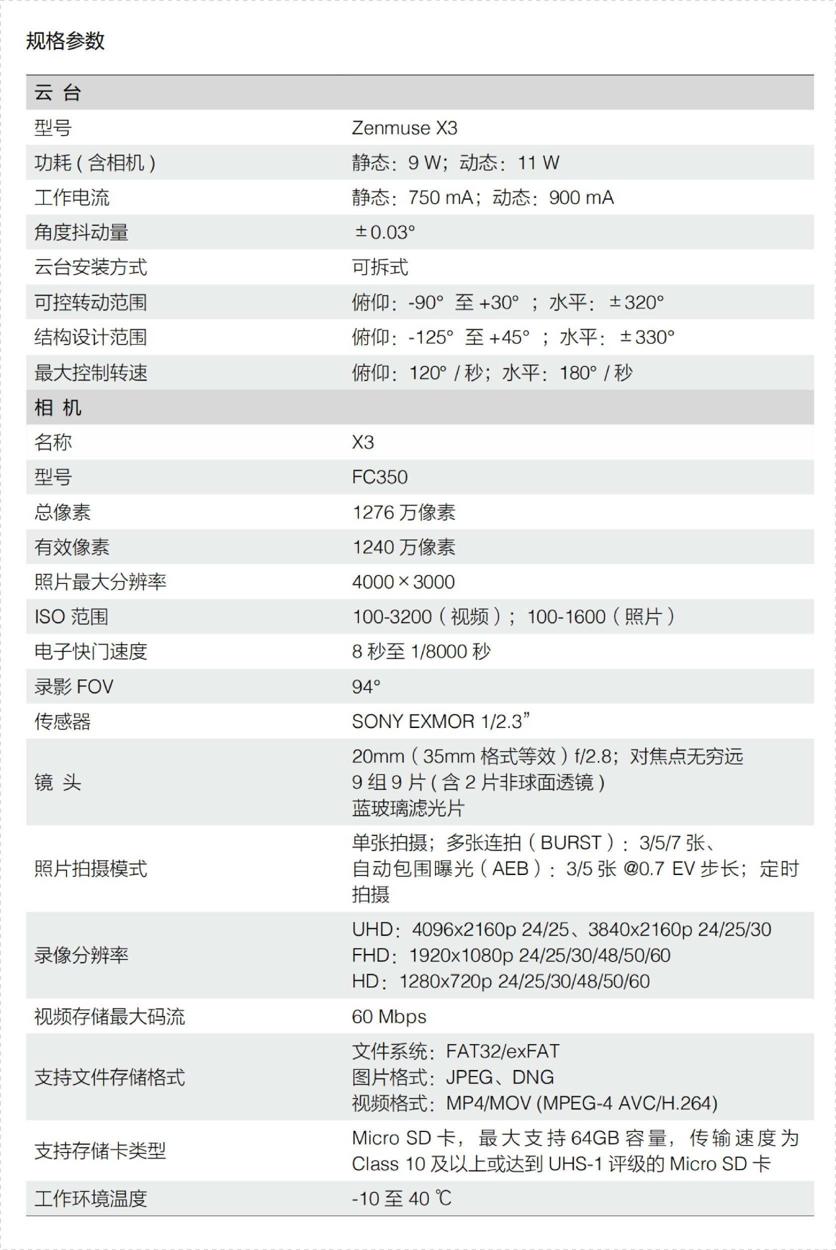时能控制快门速度、ISO、拍照和视频录制,使用禅思X5和X5R时,还能调节焦点